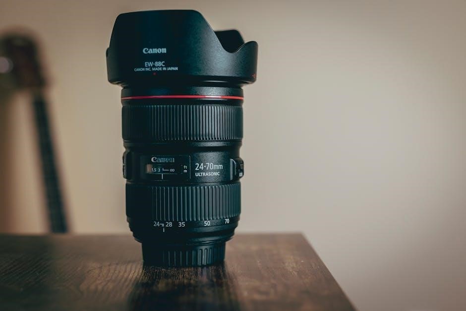 Lens errors (like Err 01) mean the camera isn’t communicating with the lens – check the connections. Consult the manual’s troubleshooting section for specific error codes and detailed steps to resolve them‚ or contact Canon support.